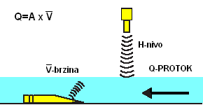 Q=A*V - Mjerenje samo nivoa vode te izračunavanje protoka primjenom Q-H krivulje.